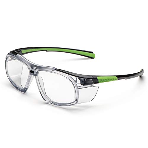 UNIVET | 555 Clear, Occhiali Protettivi da Lavoro, con Ampia Copertura Laterale, Lenti Antigraffio (EN166, EN170), Nero/Verde