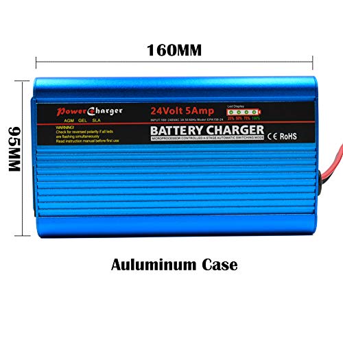✅【Carica rapida】: Il caricabatterie per batterie da 24V 5A è dotato di un cavo di prolunga AC ricaricabile e supporta un'input AC100-240V per l'uso in tutto il mondo con un ingresso di cavo AC C13 ricaricabile. Il caricatore intelligente automatico può caricare batterie con una capacità da 7-120Ah e fornisce una corrente costante per una carica più veloce, con un'amperaggio di uscita di 5A