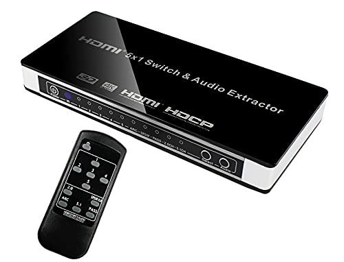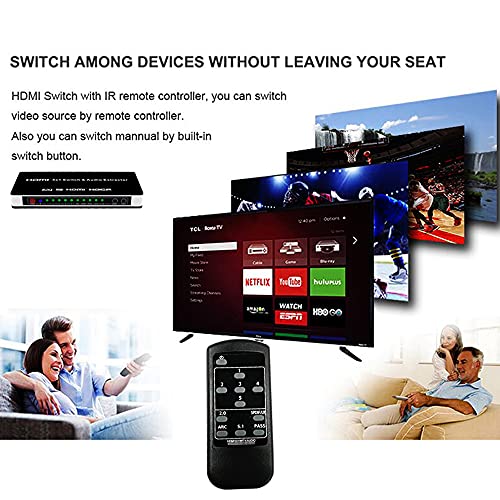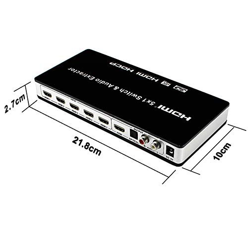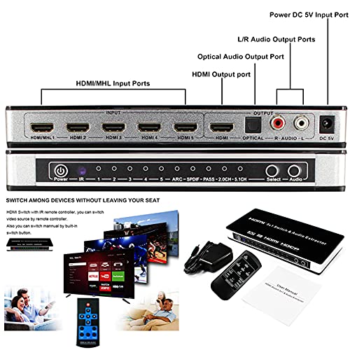 ✅【Supporta l'estrazione audio HDMI e ARC】: lo switch HDMI supporta una risoluzione massima di 3840 * 2160P e un massimo di 30Hz di refresh rate ed è compatibile con versioni precedenti. Estrae l'audio dalle sorgenti HDMI e lo trasmette agli altoparlanti tramite le interfacce SPDIF e L/R. Supporta anche la funzione ARC, consentendo di estrarre l'audio dalla TV e di trasmetterlo a un sistema audio.