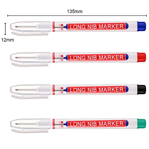 UNOLIGA 12pcs Pennarelli per Fori Profondi, Pennarello Indelebile a Punta Fine da 20 mm, Pennarello per Segnare Fori, Penna Falegname (Nero Blu Rosso Verde)