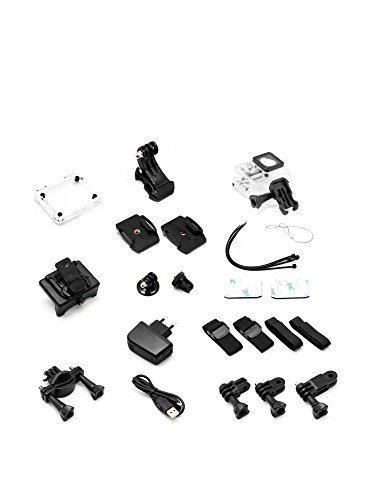 Schermo da 2 pollici a cristalli liquidi, ottica: F/2. 8f = angolo 12 mm. Grandangolo di 170°. Zoom digitale 4x. Vídeo: 4k (3840 x 2160) a 24fps, 2K (2560 x 1440) 30FPS 1920 x 1080 60fps e 1280 x 720 a 120fps. Formato 16. Bilanciamento del bianco: JPEG fino a 16 megapixel. Audio: microfono e altoparlante integrati. Memoria esterna Micro SD card non inclusa. Carica con cavo USB. Batteria 900 mAh 3.7 V al litio per più di 70 minuti di autonomia. Sistemi operativi Windows e Mac OSX. Sistemi mobile Android e iOS. Connettività WiFi per collegare la fotocamera a uno smartphone o tablet e per visualizzare la registrazione in tempo reale. Consente inoltre di utilizzare il telefono come telecomando, può scattare foto e avviare una registrazione video, cambiare la risoluzione dello schermo e della fotocamera. Applicazioni disponibili per Android/iOS.