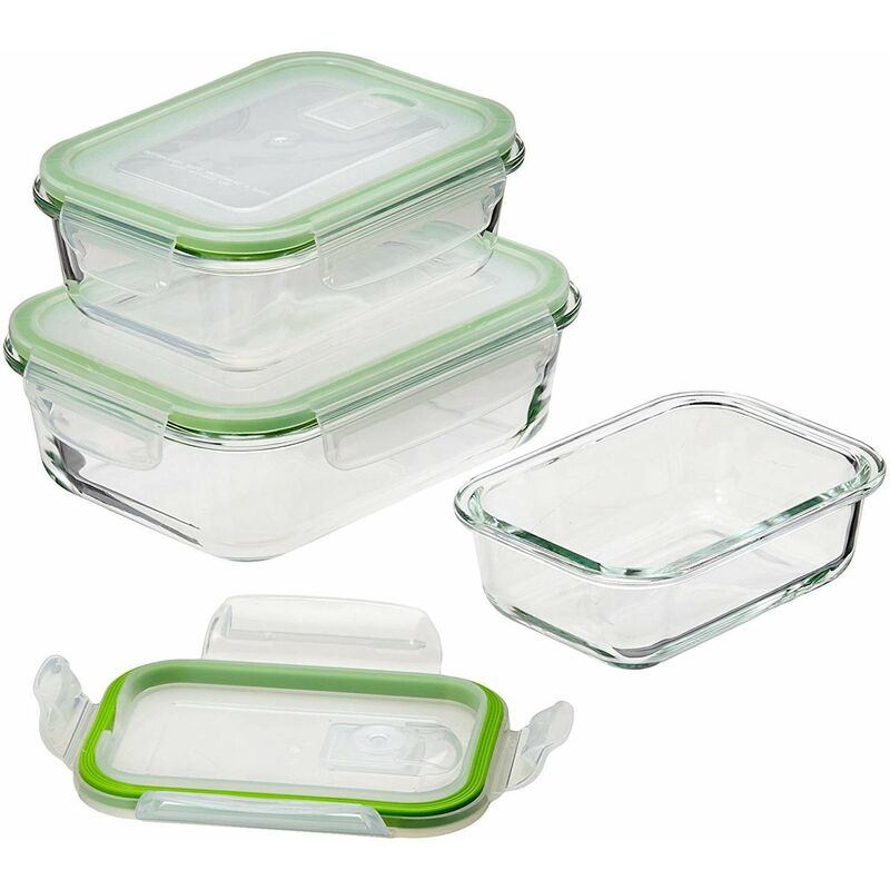Il pratico tuttofare da cucina in vetro Set di 6 pezzi: 3 - contenitori per alimenti in vetro con coperchi Anello con chiusure sui 4 lati e guarnizione in silicone Con protezione aroma ben chiuso Pratico per microonde, valvola contro il surriscaldamento Pratico set da 3 dei nostri contenitori con comprovato chiusura it con un clic. Grazie all' aroma per tutto resta in queste ciotole in vetro fresco più a lungo e resistente. Senza coperchio forno fino a 330 °C con coperchio, adatto anche per il forno a microonde. o utilizzare le ciotole per caramelle e dolci e salatini ad esempio a un accogliente per TV sera con gli amici. Versatile e molto robusta. Tutte le caratteristiche auf einen Blick: Materiale: vetro borosilicato, plastica. Utilizzabili in forno fino a 330 °C (senza coperchio). Dimensioni scatola 1: circa 15,3 x 11,2 x 5,8 cm/350 ml Dimensioni scatola 2: circa 17,6 x 13,2 x 6,4 cm/650 ml Dimensioni scatola 3: circa 20,7 x 15,4 x 7,0 cm/1050 ml Contenuto della confezione: 3 x