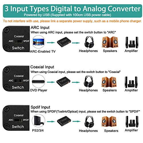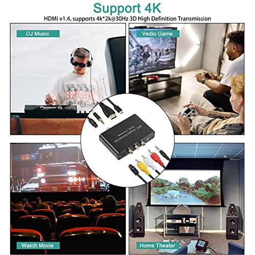 【Facile da installare e utilizzare】 Ampiamente usato per PS3, PS4, Sky, lettore Blu-ray, HD DVD, HDTV, sound bar, amplificatore, altoparlante, sistemi home theater, amplificatori AV, ecc. Perfetto convertitore audio DAC ed estrattore HDMI ARC per soundbar di uscita audio, amplificatore, altoparlanti o cuffie.