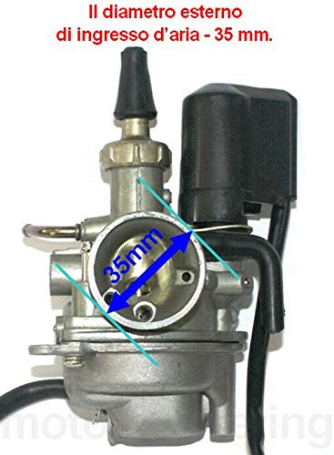 NUOVO ILLIMITATO ____ CARBURATORE 12mm con disposotivo avv. AUTOMATICO ____ Il diametro di diffusore - 12mm ____ La spaziatura del montaggio di imbocco di vite - 42mm ____ Il diametro esterno di ingresso filtro d'aria - 35mm ____ l carburatore puo puòessere utilizzato nei cilindri modificati. ____ La qualità di esecuzione è ottima! ____