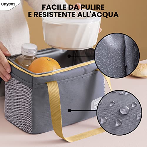 Unycos - Borsa Termica per Alimenti 5.6L - Borsa del Pranzo - Piccola Pranzo, Ufficio, Scuola, Picnic - Borsa Impermeabile per il Pranzo - Multifunzionale | Leggera - Portatile - Isotermica (Grigio)