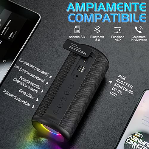 UOHHBOE Cassa Portatile Bluetooth 5.0 Altoparlante Bluetooth Wireless 360° Associazione Stereo 3600mAh con Luce LED Colorate per Chiamata Vivavoce AUX USB TF per Esterno Festa Viaggio Come Regalo