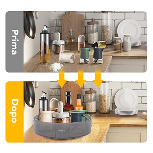【Vassoio per Spezie Rotante a 360】L'portaoggetti girevole plastica UOHHBOE è realizzato in plastica resistente, priva di BPA e sicura per gli alimenti. Il fondo dell'organizzatore è dotato di cuscinetti a sfera in acciaio inox e può essere ruotato dolcemente di 360° a sinistra o a destra. Consente di accedere facilmente alla bottiglia più interna.