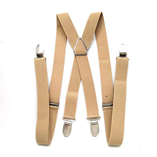 Uomini 120cm'S Solid colore puro elastico Bretelle Bretelle 2,5 cm durevoli elastiche bretelle regolabili X-Type Bretelle Shirt Bretelle, Beige chiaro 100cm, un formato