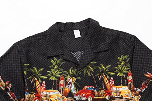 Uomini Aloha Shirt Camicia hawaiana Auto Nero M