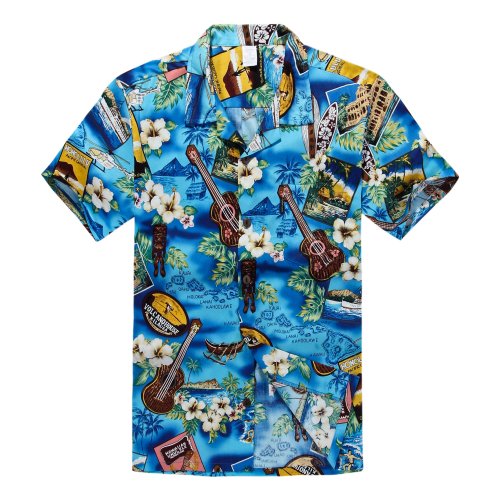 Uomini Aloha Shirt Camicia hawaiana Blu Paradise S
