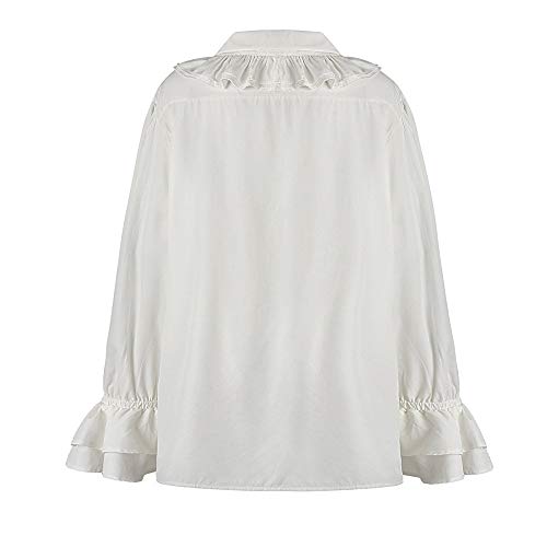 Uomini Arruffati Camicia Manica Lunga Gotico Steampunk Vittoriano Cosplay Pirate Abbigliamento, bianco, XXL