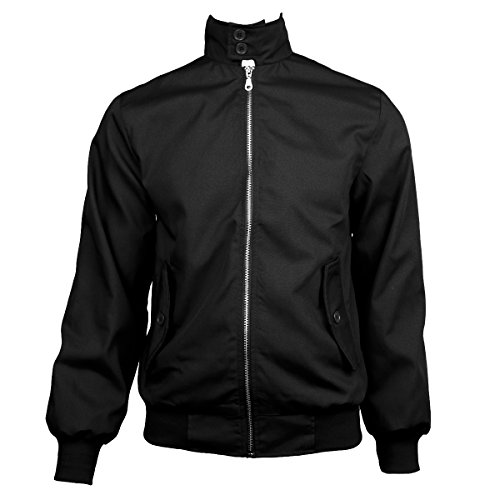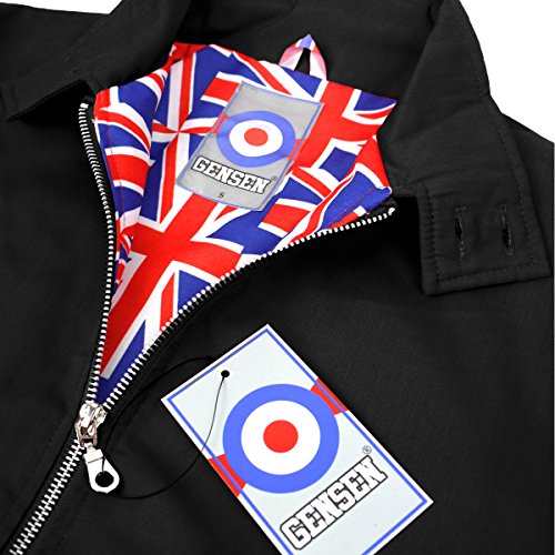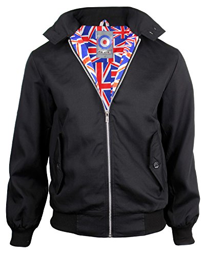 Uomini Classico Harrington Giacca Indie Mod Rullo Union Jack Fodera - Nero - Medium