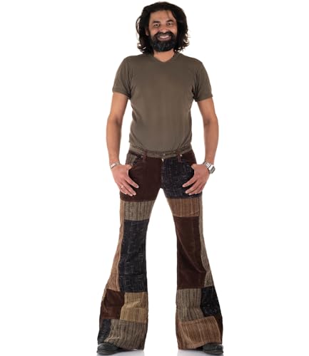 Uomini Patchwork di velluto pantaloni Brown 70 Retro