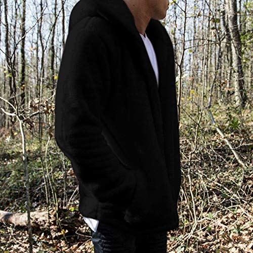 Uomini Popolare Inverno Cappotto Casual Caldo Spesso Solido Manica Lunga Felpe Con Cappuccio Orsacchiotto Morbido Pile Felpa Pelliccia Con Cappuccio Nero XXL