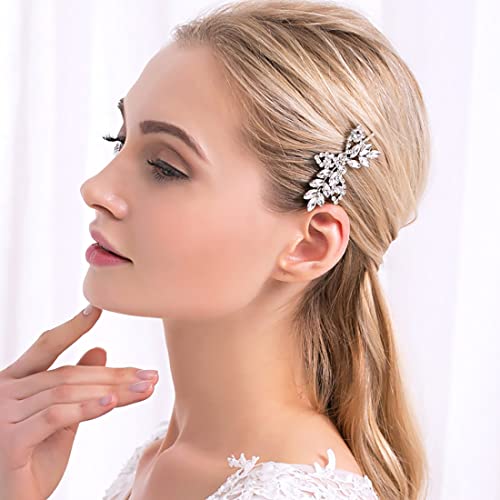 Uongeod - Forcine per capelli da sposa con strass (2 pezzi), con motivo a foglia, con perle e cristalli, color argento, accessori per capelli da sposa eleganti