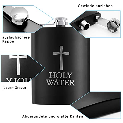 Uooker - Set di fiaschette in acciaio inox, con incisione Holy Water Hip Flask, confezione regalo con 1 imbuto, 2 bicchieri, regalo per matrimonio, fiaschetta regalo per uomini e donne, colore: nero