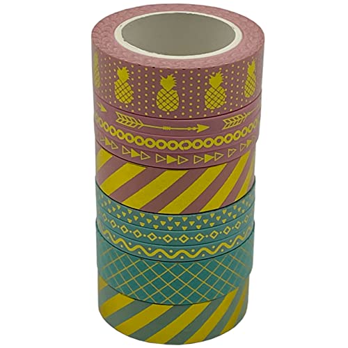 UOOOM 10Pcs 5mm/15mm Colorati Washi Tape Oro Foglio Modelli Nastro Adesivo Decorativo Scrapbooking DIY Craft Regalo di Natale, 10m/Rotolo (Design 9063)
