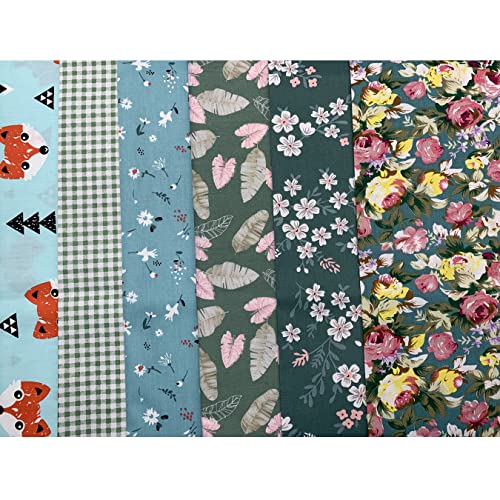 UOOOM 6pcs 50 x 50 cm patchwork cotone Tessuto DIY Handmade Quilting Tessuto motivi diversi (Blu verde)