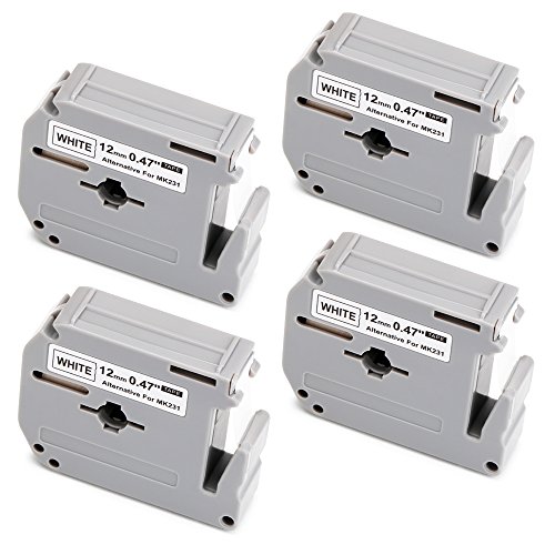 Confezione: 4 Rotoli (non originali) compatibili Brother M-K231 MK231 M-231, Dimensioni: 12 mm x 8m, Colore: nero su bianco Nastro di etichettatura standard.