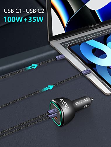 UOUCOO Caricatore da auto USB C da 165 W,ricarica rapida,caricatore da auto tipo C,PD3.1 da 140 W, PD3.0,100 W,adattatore per ricarica rapida,per iPhone 15/14 13 Pro,Samsung S22,S21,iPad,MacBook Pro