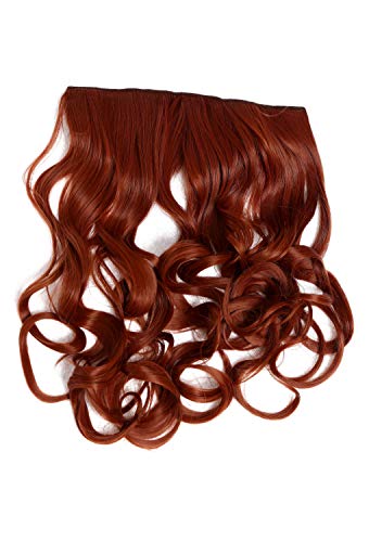 Extension a clip, lunga 50 cm e larga 25 cm, per l'intera nuca, con onde vivaci- disponibile in diversi colori- qui in un rosso ramato scuro. Fibra resistente al calore fino a 180°.