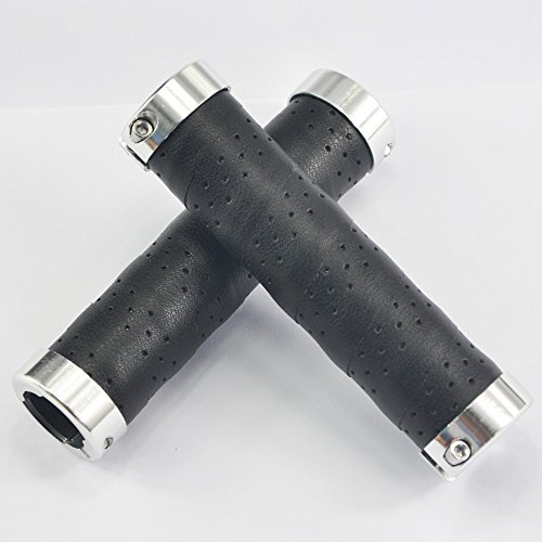 Upanbike Impugnature per manubrio, in pelle, con doppia serratura, da 22,2 mm, per mountain bike e bici da strada (una coppia), Nero