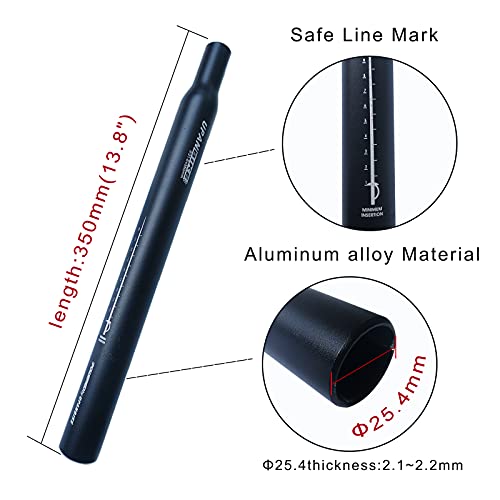 Upanbike - Reggisella in lega di alluminio da 25,4 mm, 27,2 mm, 28,6 mm, 31,6 mm, lunghezza 350 mm, nero, per mountain bike e biciclette a scatto fisso, Nero, 27.2mm*350mm