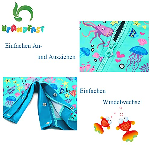 Upandfast Costume da bagno con cerniera per bambini/ragazze con fondo a scatto UPF 50+ protezione solare per bambini, Polpo verde., 6 mesi