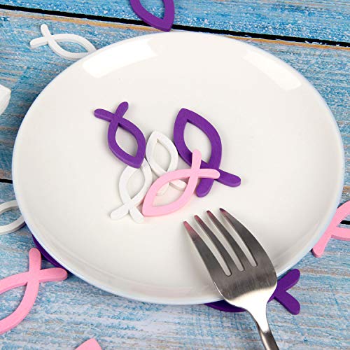 Upchase 132 + 40 Tovaglioli Pesce, Battesimo Decorazione Pesce, Comunione o Cresima, Pesce Streudeko in legno, Decorazione da tavola, o Altre occasioni festive, Ragazzo ragazza (Rosa Viola Bianco)