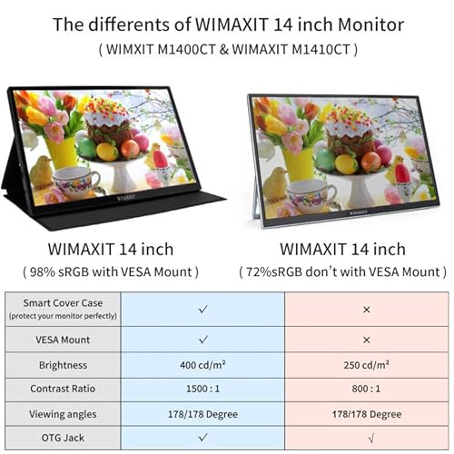 Update - WIMAXIT 14 pollici Monitor touch portatile da con 98% sRGB Full HD 1920 × 1080 IPS Image Flip 2 porte USB C Schermo del computer,Monitor per PC con doppio altoparlante Mini HDMI with VESA
