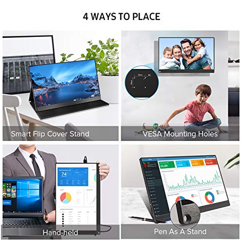 Portalo con te ovunque: viene fornito con una custodia in pelle PU resistente. Compatibile con VESA può essere facilmente montato su un braccio o supporto per monitor compatibile. Grazie al design unico con fori circolari, è possibile utilizzare una penna come supporto. Inoltre, il display è ancora più facile da trasportare. Puoi viaggiare solo con lo schermo e la penna.
