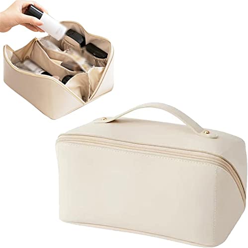 2022 Upgrade Large-Capacity Travel Cosmetic Bag - Large Travel Makeup Bag,Waterproof Portable Cosmetic Travel Bag,Toiletry Bag for Skincare Cosmetics Toiletries With Handle and Divider (White)