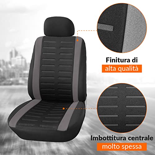 Upgrade4cars Coprisedili Auto Anteriore Universali Nero Grigio | Set Copri-Sedile Universale per Guidatore e Passeggero | Accessori Auto Interno