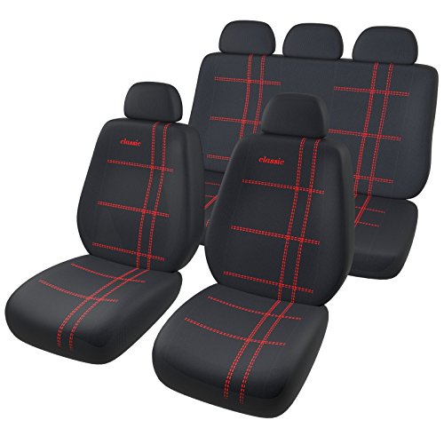 Upgrade4cars Car Seat Covers UK Set for Front and Back/Universal Fit/Washable/Divisible Back Bench Seat/Backrest Covers headrest Covers and airairairopenings/Black Red