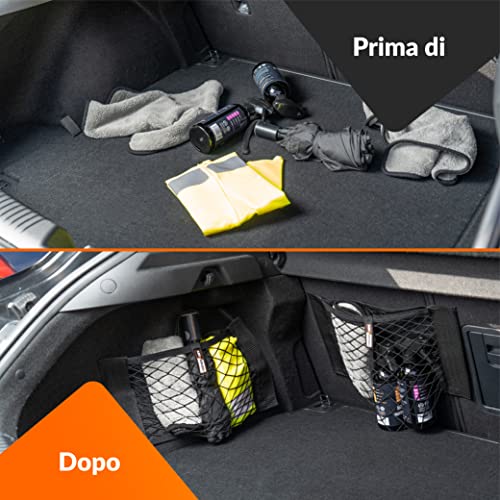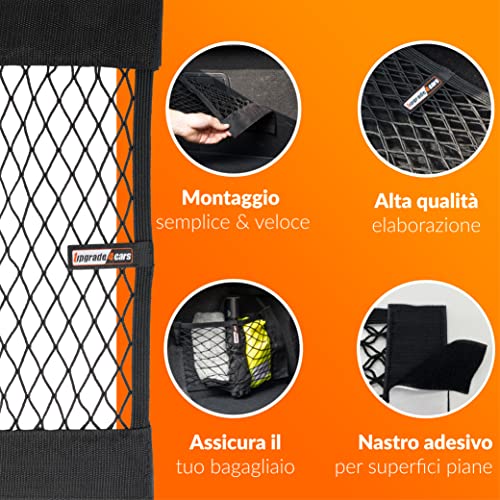 Upgrade4cars Rete Portaoggetti da Bagagliaio | 2 x Porta Oggetti per Auto 40 x 25 cm | Organizer Tasca per Baule Universale & Elastica | Accessori Interni Gadget