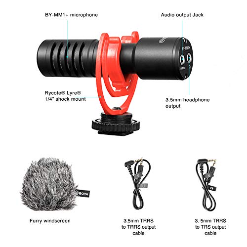 Upgraded New BOYA Camera Super-Cardioid Video Shotgun Condenser Microphone by-MM1+ with Headphone Monitoring for Camera Camcorder Android iOS Smartphone Mac PC Live Stream Recording