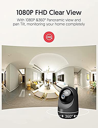 YHBD [2021 Upgraded] Pet Camera,Camera Dual Band 2.4 GHz / 5 GHz Wi-Fi Camera PC650,1080P Camera di sicurezza interna,Audio a due vie,Rilevamento del movimento e visione notturna (Black)
