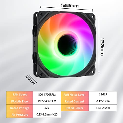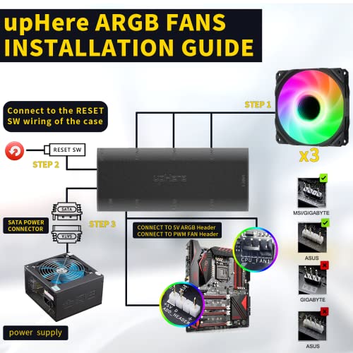 UpHere 120mm PWM Ventole PC ARGB,Compatibile con ASUS Aura SYNC,Controllato da Scheda Madre, Ventola LED ARGB a Specchio,UA0107-3
