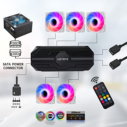 UpHere 120mm Ventole PC RGB,Compatibile con ASUS Aura SYNC,Controllato da Scheda Madre/Controllore RC con Ventola LED ARGB a specchio,UA0106-5WT