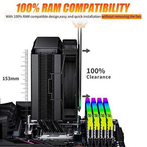 【Compatibilità RAM al 100%】Completa configurazione dei banchi di memoria RAM nei case per PC con spazio limitato.La ventola della CPU di dimensioni classiche ha un'altezza di 153 mm, offre un'ottima compatibilità con i case per computer più diffusi sul mercato, non blocca gli slot per la RAM.