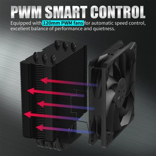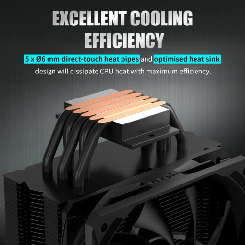 UpHere Nero Dissipatore CPU con 5 Tubo di Calore Ventola PWM da 120mm, Ventola CPU per Intel LGA 1700 115X 775/AMD Ryzen AM4 Presa Universale, S5BK