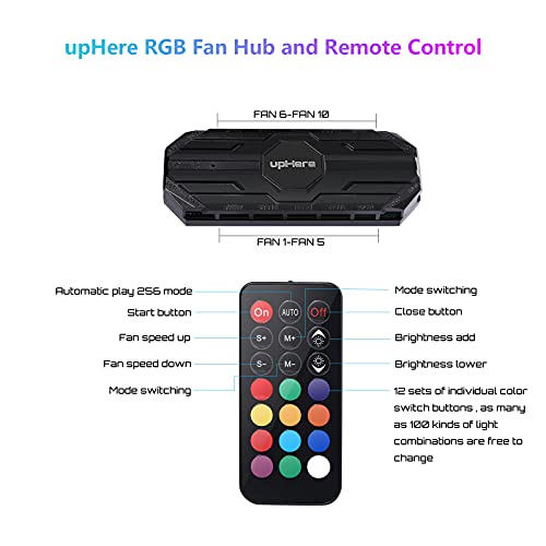 UpHere Hub RGB indirizzabile a 10 porte 6PIN SATA/5V 3PIN con telecomando a 21 tasti per ventole 6PIN, MBX12