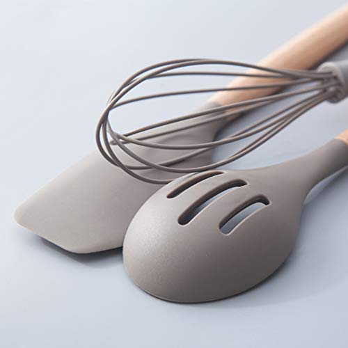 UPKOCH Frusta antiaderente in silicone premium resistente al calore 1pc con manico in legno di faggio per pranzi di vacanza riunioni di famiglia cene di cucina