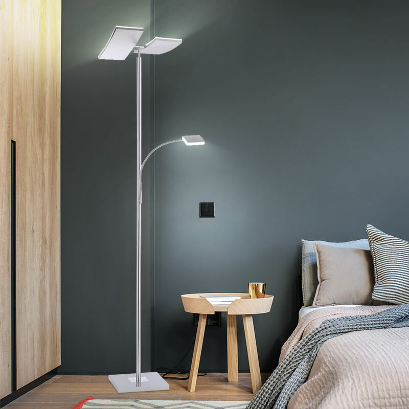 Descrizione I washer per soffitti a LED in metallo convincono per il loro design semplice e classico. Una vera attrazione per la tua zona giorno: la lampada da terra a LED color acciaio colpisce per il suo design moderno. Viene fornito con tre lampade a LED integrate e crea un'atmosfera accogliente e piacevole con il suo colore di luce bianco caldo. L'uplight ha una testa della lavatrice e una luce di lettura che possono essere accese separatamente l'una dall'altra. La testa del proiettore è mobile e la luminosità può essere regolata a piacere utilizzando un dimmer tattile. Il braccio di lettura della lampada da terra è dotato di un braccio flessibile in modo da poterlo regolare a piacimento. Grazie alla tecnologia LED utilizzata, l'apparecchio è estremamente a risparmio energetico e colpisce per la sua bassa generazione di calore e la lunga durata. Vivi la meravigliosa esperienza di illuminazione nelle tue quattro mura! Rispetto alle luci normali, i faretti a LED consumano solo una