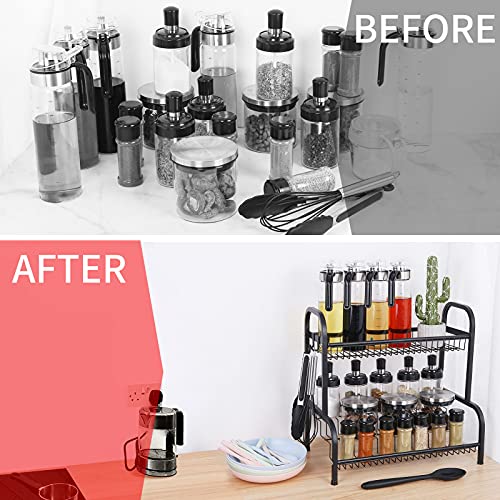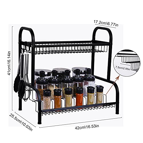 Uponer Porta spezie, 4-Tier Organizer Portaspeziecon 8 Ganci Rimovibili 42*41*25.5cm Organizzatore da Tavolo Pratico Portaspezie in Acciaio Inossidabile per barattoli da Cucina Toletta Armadio(Nero)