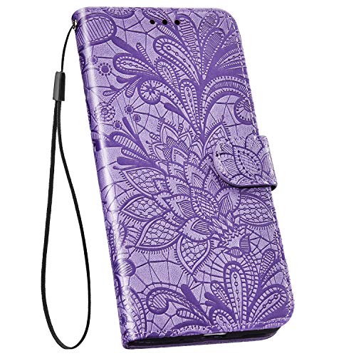Uposao Compatibile con Huawei P30 Custodia per Cellulare Mandala con Motivo a Loto Fiori Cover in Pelle Flip Portafoglio Case a Libro Porta Carte Magnetico,Viola