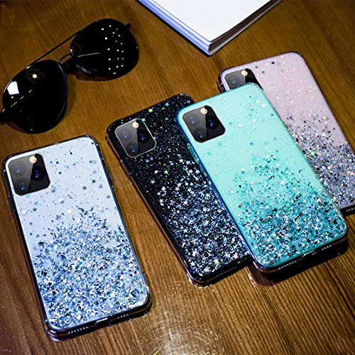 Uposao Compatibile con iPhone 11 Pro Max Custodia Protettiva in Brillantini con Strass di Cristallo Lucido con a Forma di Stella con Cover in Silicone TPU Ultra Sottile Trasparente,Nero