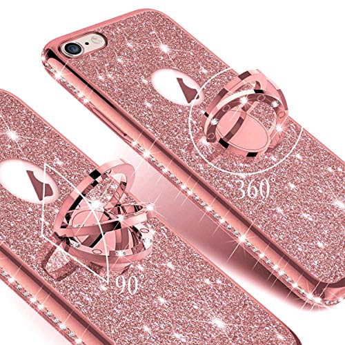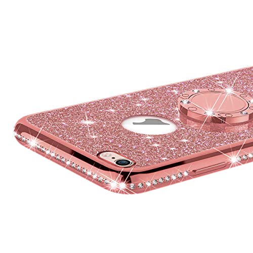 Uposao Compatibile con iPhone 6 Plus/6S Plus Custodia Glitter Brillantini Strass Diamante Morbido Silicone TPU Gel Cover con Anello Bling Ultra Sottile Placcatura AntiGraffio Protettiva Case,Oro Rosa
