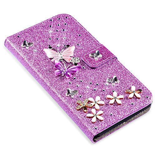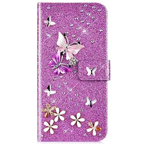 Uposao Compatibile con Samsung Galaxy S10 Lite Borsa per Cellulare Custodia Farfalla Fiori Bling Glitter Diamante Case Libro Bookstyle Cover a Conchiglia Caso Protettiva Portafoglio in Pelle,Viola