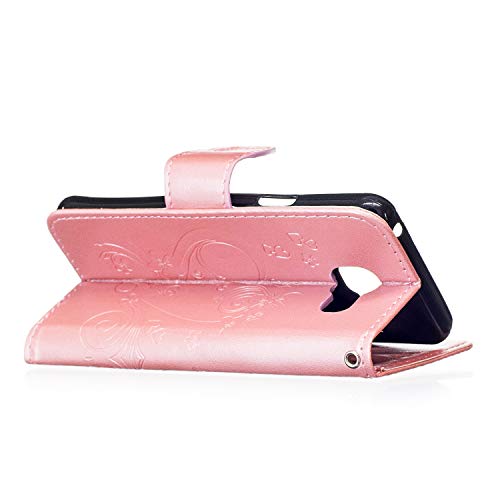 Uposao Compatibile con Samsung Galaxy A3 2016 Custodia,Brillantini Portafoglio - Bling Glitter Cover in Pelle Colorata Cuore Farfalla 3D Disegno Libro Antiurto Supporto Copertura Case,Oro Rosa